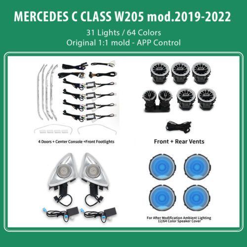 DIQ AMBIENT 8161 DCL (FK) – BENZ C (W205) (Digital iQ Ambient Light for Mercedes C (W205) mod. 2015-2018 with 33 Lights – FULLKIT)