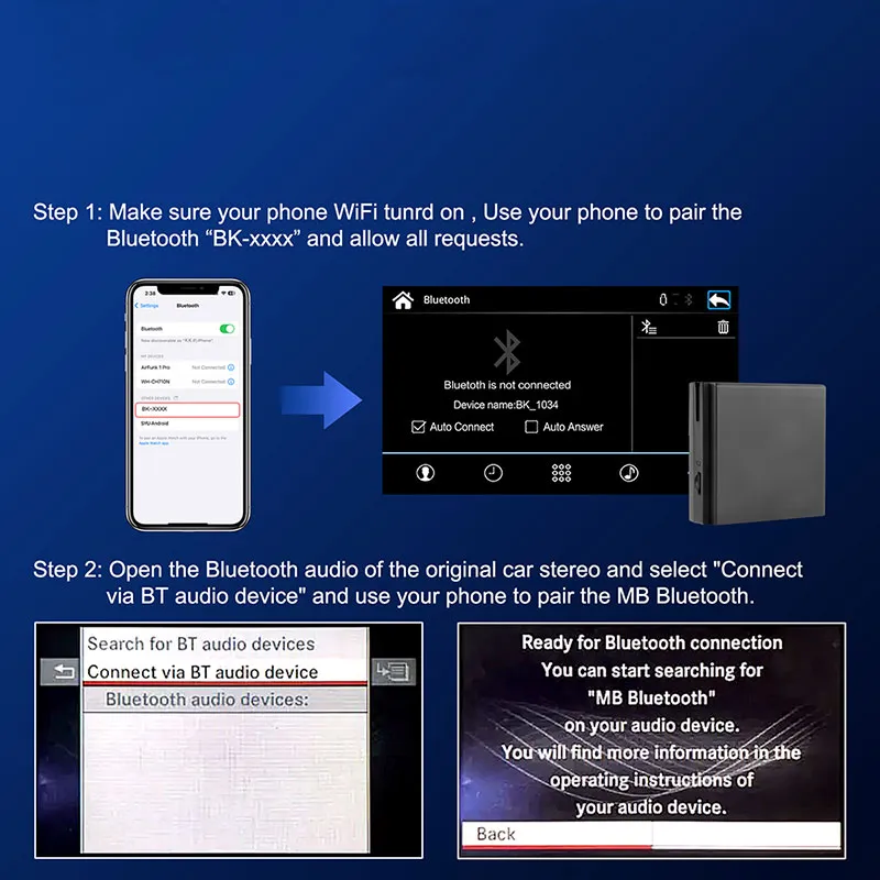 Ρύθμιση ήχου ασύρματου CarPlayΑπλά βήματα για να λειτουργήσει ο ήχος για ασύρματο CarPlay/Android Auto με το κουτί αποκωδικοποίησης μέσω σύνδεσης Bluetooth Wireless CarPlay Sound SetupSimple Steps to Get Audio Working for Wireless CarPlay/Android Auto with Our Decoder Box via Bluetooth Connection |