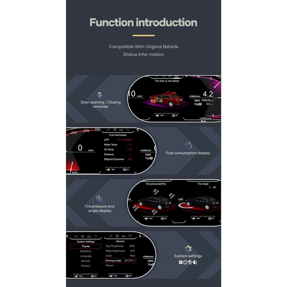 - Intelligent control: Intelligent monitor can show your car informations in real time.