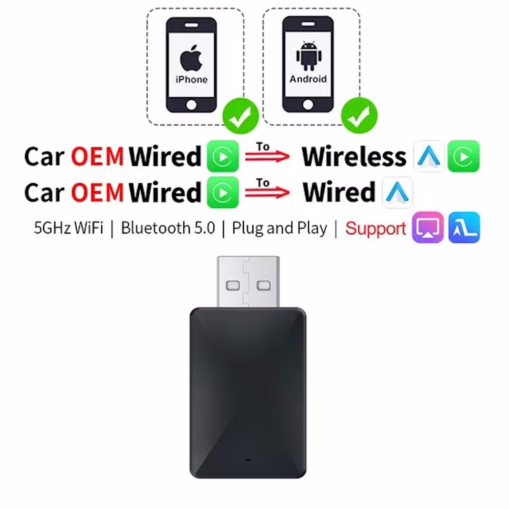 - Μετατροπή του ενσύρματου εργοστασιακού Apple Car Play & Android auto σε ασύρματο, με αυτόματη σύνδεση κατά την είσοδο σας στο αυτοκίνητο.